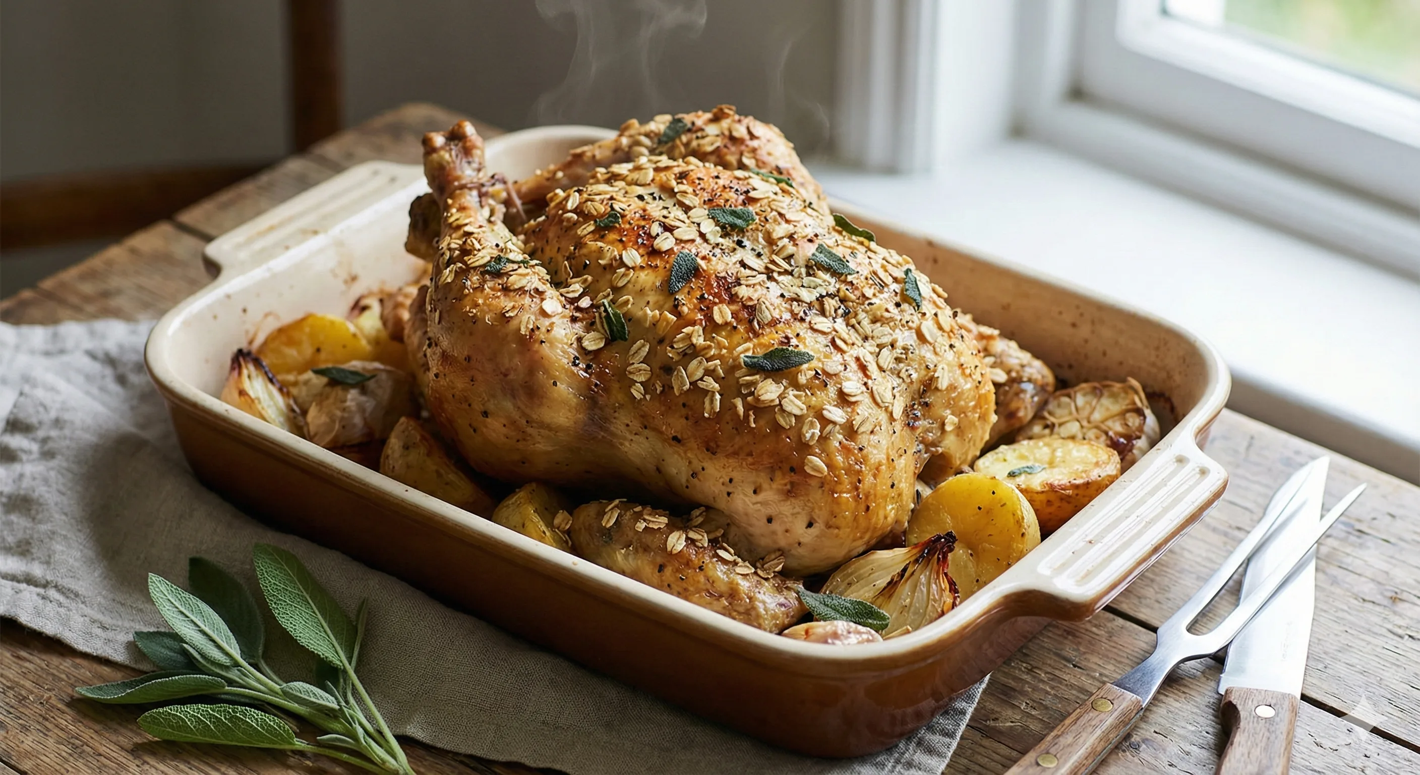Frango Assado Crocante com Aveia e Sálvia Fácil